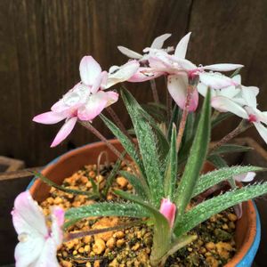 父が軽石で作った植木鉢に入れたら 雰囲気ぴったり(^ ^) でも、花の名前がわからず…