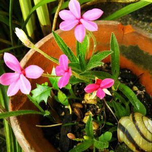 昨日の雨上がりに、カタツムリ🐌がセメントを食べていました‼ 私にはそう見えたんだけど!本当のところは わかりません。 エントランスのこの鉢に🐌置いてパチリ‼