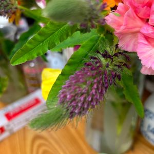①センテッドエアー とても香りのいいバラほとんどのバラが終わった中で咲いてくれています。 ②クレマチス白万重 白万重も沢山のお花を咲かせてくれています。 ③トリフォリウムルーベンス 宿根で毎年咲いてくれる可愛いお花。 ④セネシオポリオドン 1センチ程の小さなお花が沢山咲いて可愛いです。 ⑤名無しアジサイ 濃い色でとても目立ちます。