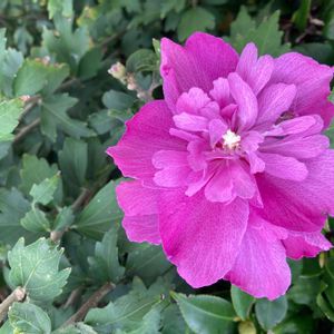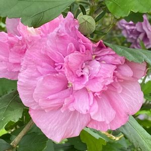 今朝の散歩で 遠くからでもきれいなピンク🩷が 目立って、近くまで行って 確かめてきました。 ムクゲの八重でしょうか⁉️ ハッキリは、わかりませんが そうかな⁉️と。 違っていたら、教えてください🙏