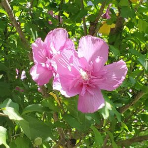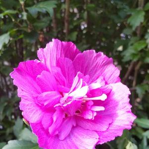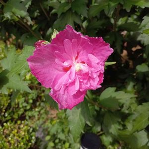 名前教えて下さい。 八重咲きむくげ有難うございます。友人の庭のお花です。