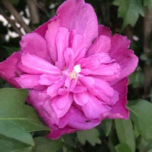 庭の八重の木槿(ムクゲ)。 やっと私の背の高さでも撮れた!