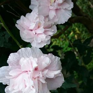 薄紫投稿その② 八重でウスムラサキノムクゲです。裏庭でひっそりさいてました。
