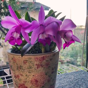 おはようございます。 涼しくて爽やかな朝です🥱😄 カトレアが咲き揃いました。 全部並んでかわいい❤️