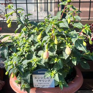 エンジェルスイヤリングの蕾がどんどんふくらんできています。 そろそろ咲くかな? フクシアは実物を(意識して)見るのが初めてなので楽しみ!
