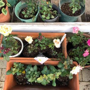 おはようございます😊 ミニバラ、分割して植え替えました😊 GSのお友達に教えてもらったので早速植え替えました🌹 とりあえず、同じポットに入っていたものをかためておきます🌹 咲いてるバラが可愛くて切れなかってけど、今日カットしまーす。 素敵な休日をお過ごしくださいね🥰