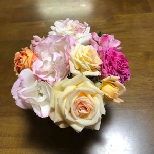 おはようございます🌦 うーん、雨降る☔️なら、ずっと降ってて☔️ 止むなら早く止んで〜☁️ やるの?中止? 仕事休みとってこの天気😞最悪〜 植え替えたときにカットしたこたちです🌹🥰
