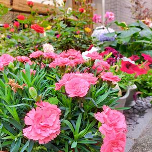 何年か前に、母の日に貰ったカーネーションが見頃になってきました♡ 玄関前には「今が旬!」の花を置いています。 今は、ミニ薔薇、紫陽花、ペチュニアにサフィニアが。 ポスト周辺にはカリブラコアとカーネーション♡♡ 駐車場には育成中の鉢があり、 ベゴニアとオステオスペルマム、それにゼラニウムが咲き始めているので 様子を見て紫陽花やカリブラコアあたりとチェンジする予定。 玄関周りはいつも花がある…を目指して楽しんでます(*´艸`*)