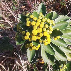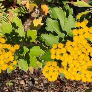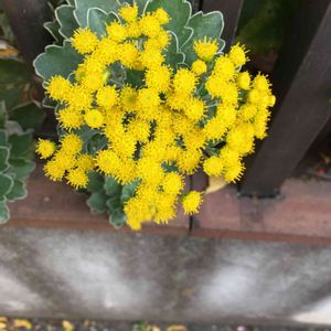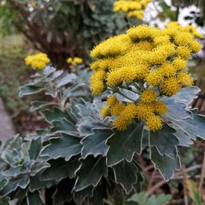 裏庭でひっそり咲く『イソギク』✨ 寒くなると地味なお花を咲かせます💛 花より葉っぱの白い縁取りがポイントかも♡