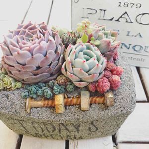 今日は少し多肉いじりができた⑅︎◡̈︎* ikuraさんのコンクリ鉢とピック⑅︎◡̈︎*