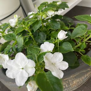 日陰でも元気✨ インパチェンス❁⃘*.゚ 次から次へお花をつけてくれて かわいい🤗 1株植えでぐんぐん成長してくれて嬉しい😊 葉っぱが変色したりあったけど、 いまのところ大丈夫かな☺️