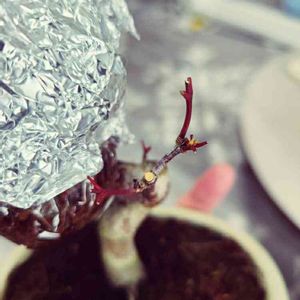 弄くり回した結果、寂しくて気に入ってなかった下の方に不定芽出現…!これはラッキー😆😆新芽も真っ赤に出て来てますね〜