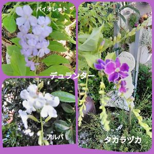 こんにちは🙋♀️ まだ陽射し強いです。 水やりしたら汗ばみました。 デュランターも、やっと3種類そろいました。