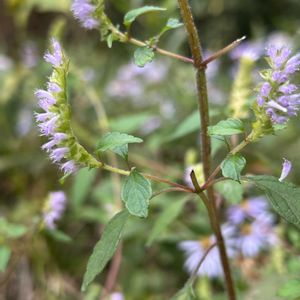 おはようございます☁️ 昨日の里山 林縁に咲いていました。 ナギナタコウジュ💜 もう終盤でお花が少し残っていました。 2️⃣は、花後 ナギナタっぽい 4️⃣バックにノコンギクが群生していました。 シソ科ナギナタコウジュ属 花がそり返り、片側につく様子を薙刀にたとえた。 山地や道端に生える一年草。 高さ30〜60㎝。 全体に強い香りがする。 花期 9〜10月