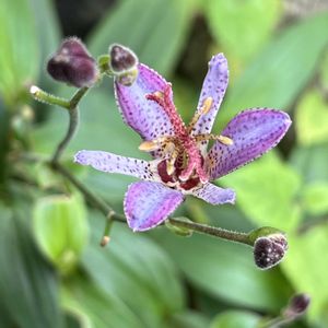 今咲いている紫系の花💜 ① 迎えたばかりのイワシャジン💙 ② トウテイランのシルバーリーフも好きです🩶 ③ ミツバハマゴウ・プルプレア、葉の表が緑で裏側が薄紫色なのが、とてもオシャレです💚💜 ④ ロシアンセージの奥にラベンダーセージ🩵💜 コラボがとても気に入っています🥰 ⑤ アメジストセージ、もふもふ咲いています🎶
