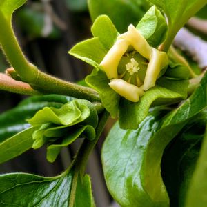 シトシト雨☔ 買い物ついでの 花散歩で✨ 💛💚🔴💚🔴💚⚪🌿🔴💚 ♪ 1️⃣今日のお花✨ カ キ 撮影 5/16 2️⃣冬青の実 赤く色づき始めていました 3️⃣木斛 赤い実が弾けていました 4️⃣白南天の実 白くなって来たような! 5️⃣山法師の実 ほんのり桃色 今日も 笑顔😄で 過ごせますように💐