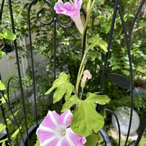 桔梗咲きの朝顔 苗で購入。。涼しくなって、元気に成長✨ 次々と開花してくれています😊 名前が ↗️弥七 ↙️飛猿 ・・・ネーミングが (´・ω・`) 水戸黄門?時代劇シリーズ?