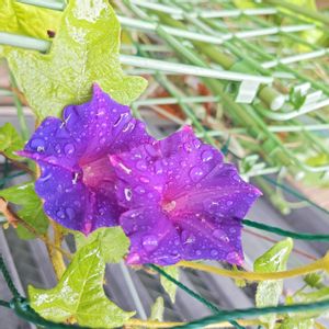 こんにちは😃💙💜 我が家の今日のアサガオです🥰👍 ◎ アサガオ 飛猿 かざぐるまシリーズ 花も葉も小ぶりで可愛らしいのが特徴です。 ♪(๑ᴖ◡ᴖ๑)♪💜💙💚 かざぐるまのような咲き方が夏の庭を涼しげに演出します。 ずっと伸びるのをカットしないでいました😊👍 時々種子ができて今は花を咲かせる為に種子を作らないようにしています。 (((o(*゚▽゚*)o)))♡💛💜💙💚💛 ずっと朝は雨でやっと綺麗に咲いてくれました(^O^☆♪💜🍀💜🍀💜 午後からも水分補給をしながらお身体に気をつけてお過ごしください♪♪٩(๑❛ᴗ❛๑)۶♪♪💜💛💜💙💚💠💚💙💜💛💜