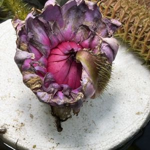 「オオニバスの花後の姿」 花後は水中に沈むのだが、発泡スチロールで支えているので花後の様子を見ることが出来た 果実が見えます 咲くやこの花館 2025/10/28