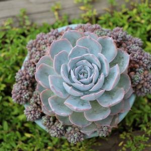 赤ちゃんたちを寄せ植えしました✌️ お庭のクリーピングタイムの上に乗せて撮影❤️ 昨年植えたタイム。たくさんお花を咲かせてくれてます💕