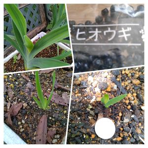 今日の庭から 今日のお花 ヒオウギということで、 去年の春に友人からもらった ヒオウギの種 ぬばたま を蒔いた記録をpicしてみました〜😉 右上から下へ時計回り 2024年の6月に種をまいて 下 7月 白丸は一円玉です 左 9月 左上 今日の様子です。 だいぶ成長しましたけど、1年後ではまだ咲きませんかね~🤔