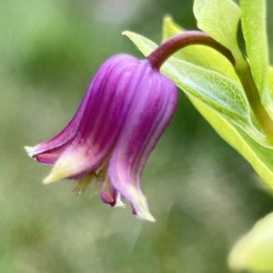 ◯クレマチス◯万葉の君 花後の切り戻し後、また伸びてひっそりとスズランかと思うほどのちっちゃいお花を咲かせていました😊可愛すぎる💕 春は真っ赤な花でしたがだいぶ色味が違いますね。