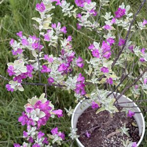 ◯レウコフィルム◯ 少しだけ気温が下がったからか、レウコフィルムが綺麗に咲きました。真夏にも咲いたのですが、数えるくらいしか咲かず。木々もこの夏は堪えたに違いない‥。 3年くらい前にYouTubeで育ててる方を見て、シルバーリーフにピンクの花に惹かれホームセンターや園芸店を探し回りました。やっとのことで見つけて今に至ります。 最近はこの時期あちこちで販売してるのを見かけるようになりました。 勿体無いのはお花がすぐに落ちてしまうこと。開花から2、3日じゃないでしょうか。なので写真を撮るタイミングが難しいです😅