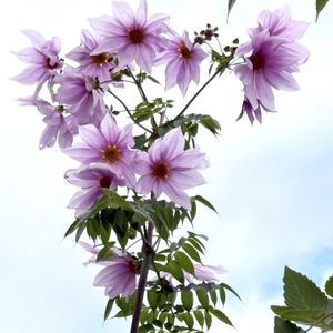 ◯皇帝ダリア◯ ご近所の見事な皇帝ダリアです。 この時期、2メートルくらいスッと伸びた枝先に沢山の花を咲かせていて存在感抜群です。毎年楽しみにしています😊 我が家のは今年は咲かず残念。去年、風で倒れたのが原因かも。2メートルくらいは伸びるので支柱がないと必ずと言っていいほど風で倒れます😥 カメラを空に向けて撮影したので、本来の花色がでてないかも😅
