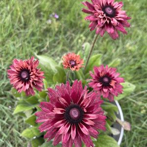 ◯ルドベキア◯ PWのフォレストグリーンだと思い込んでいた鉢からこんなルドベキアが咲きました😅 フォレストグリーンは昨年ダメにしたのかもしれません。なんで記憶が曖昧なのか‥😥 茶色よりも赤っぽい感じで咲いています。これはこれでカッコいい✨