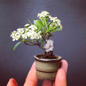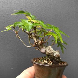 紅葉の豆盆栽🍁 この指先に乗せて写真を写すのやってみたかったんです😆 ホントは人差し指1本に乗せたいとこでしたが、落としそうなのでやめました😅