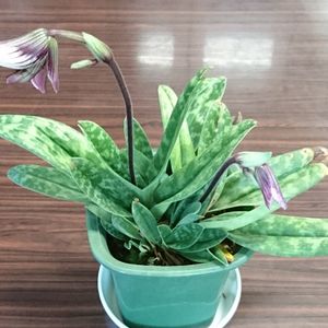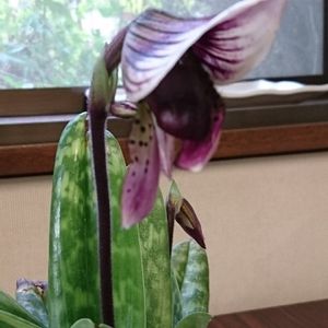 パフィオペジラム 20190725 事 色はキレイと思えないけれど、面白いので📷 20年以上元気だそう😄