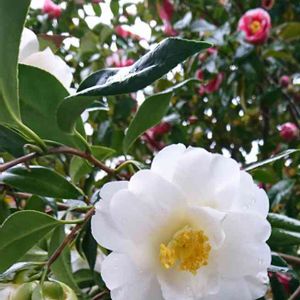 こんにちは! 実家の椿です。 いろんな椿が植わっていますが、私はこの真っ白な椿が一番好きです(*^_^*) 名前は父に聞いたのですが、忘れてしまいました💦 背丈は2㍍くらいはあり、たくさん咲いています✨ 今が見頃かな~