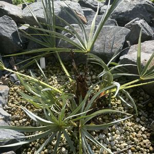Chamaerops humilis var. argentea (syn. C. humilis var. cerifera) 割れ始めたセリフェラ出品しました。 ここまでが長いんですよねセリフェラは。ブラヘアアルマータとかもそうですけど。 他のヤシとまとめて上からジャーっと水やりしてるせいか少々色褪せてますがきっと環境次第では見違えると思います。