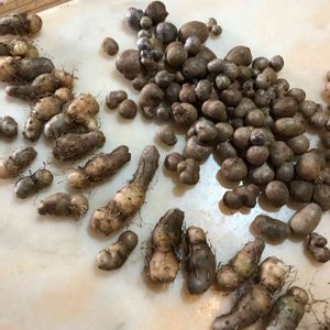 昨日収穫したむかご、洗って選別した。 少し欲しい。去年落下して取り残したものが既に自然薯になりつつ有る。 彼等が総て蔓になって全てのものに巻き付き、少々困り物。