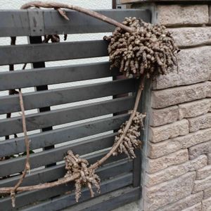 ムカゴ(零余子)がぶら下がっていました。 蔓性植物はとにかく抜いてるので、ムカゴご飯🍚は好きだけど、うちに出来るのは、なんか残念🌀 せっかくだから、収穫しようかな。 見れば見るほどいっぱいできています。 (何のムカゴかは分かりませんが、元は山林のこの地区に生えていたものだと思います)