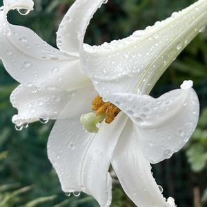 今日も朝から蒸し暑い🥵 涼やかな雨の日pic pic①②今、ワンサカ咲いてるテッポウユリ pic①は雨上がりで水滴をまとって綺麗😍 ついでに他の草花も😅 pic③ヤブランって名前だったのね。知らんかった😅 あの黒いつぶつぶの実がなるやつよね🤔 pic④クサギ(臭木) 毒があるんだって😅 pic⑤アイビー(ヘデラ) なんて愛らしいんでしょ🥰 ウチのアイビーはお庭に進出😅 野生的に成長しちゃってますo(≧▽≦)o
