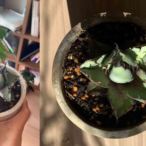 アガベ 治療中 はじめての病気治療💦 ・ブラックアンドブルー ・マクロアカンサ ・チタノタ 枯れ葉とって薬剤をぬりました。明日植えます🪴 6.13