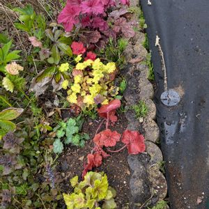 ヒューケラたちも元気に越冬✨ 同じゾーンのクリスマスローズが花盛り。 ヒューケラは昨日、新しく3種類お迎えしました☺️カラフルにしたくてこちらの3種。種類たくさんでかなり迷いました。 ブルーベリーの木陰とアジュガのグラウンドカバーでいい感じに育っています。