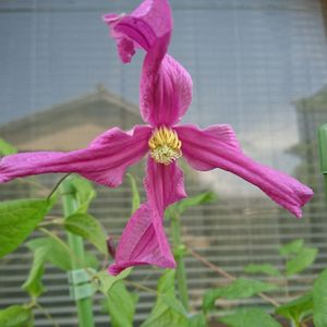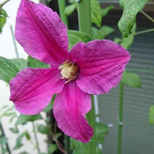 クレマチス ジャン・フォプマ 光沢があって深みのある色が気に入ってます。 もっと沢山咲いてほしいのですが、我が家では花付き悪くて2つしか咲きません。 インテグリフォリア系です。