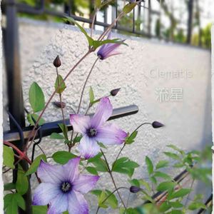 流星咲きました! 去年秋、小さな苗だったのに、無事花と出会えることができた😉 アフロディーテよりだいぶ小さいけど、うちのクレマチスの中で一番青いかも、、