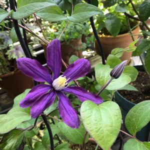 インテグフォリア系クレマチス ロウグチ** 昨年お迎えしたのですが 花は咲かないままで… 今頃、初めての開花😍 いいお色🎶💜