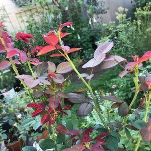 コフレ🌹 剪定😲😩😵 現在ほぼ新芽で真っ赤なんです。 剪定した方がいいのか、そのままにするかどーすればいいんだろう???