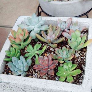 おはようございます🌄 今朝は、窓が少し結露するくらいの寒さでしたが、太陽が出てきて暖かくなりそうで😊 以前気に入って買っていた四角い鉢に、この間お迎えした多肉さんを寄せ植えてみました😃 英字新聞に包まれていたので分からなかったのですが、9個も入っていて、カラフルで大満足です🥰💖 少し大きめの苗も後ろの方にに入れ込んで、多肉さんがふっくらしてくるのを待とうと思います🌞🍀🍀🍀