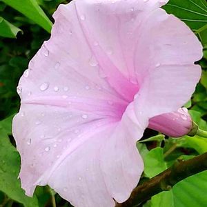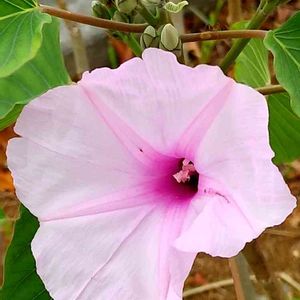 お疲れ様でしたー! 薄いピンクの大きなお花!ツルではなく低木です💗💗アサガオより大きなお花ー!素敵な色でホッとしますー!(๑'ᴗ'๑) 今日は寒かったー!💔💔
