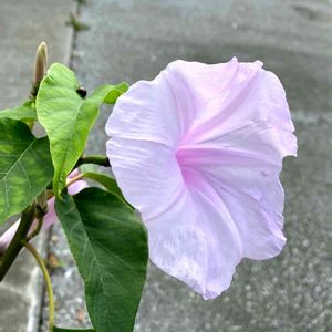 ツル性が出ないアサガオ キダチアサガオ(コダチアサガオ)木立朝顔 ヒルガオ科サツマイモ属常緑小低木 花びらはとても薄い 🏷乙女色クラブ参加します 写散歩📸 国場川遊歩道にて 22.01.28