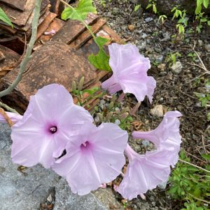 『サツマイモ』 🏷️今日のお花 いただき物のサツマイモ🍠 食べ残して忘れてて干からびてた😱 水💦に漬けといたら芽が出た🤩 珍しいサツマイモの花が咲いたよ📱 畑仲間のおじさんから連絡もらい行って見た ここだけね😊 珍しいだろう!? でも花が咲くとサツマイモ🍠は不作になるんだ😅 栄養がみんな花に行っちまって🍠が上手くないんだよ💦 珍しがって人がたくさん見に来てくれてさ〜 人の繋がりが出来て、、、 🍠が採れたらやるよ❗️ 📱するから取りにおいで🙌 って、頂いたサツマイモ🍠でした 確かに🤔 美味しくなかった😅💦 甘くなくて しっとり感もなく 焼き芋にしても全然美味しくないの 天ぷらもダメ 辛うじて大学いも🍠👌 甘味を加えるからね😅 《開花に必要な条件》 1 日照時間が短いこと(短日) 2 気温が高いまま保たれていること 3 乾燥気味の環境や、肥料が少ないなど、生育が厳しい環境下にあること(芋の肥大よりも子孫を残す方にエネルギーを使うため) サツマイモの花は本州では滅多に咲かないため、「100年に一度しか咲かない」「幻の花」などと言われることがあります。 花言葉は「幸運」: めったに見られない花が咲くと、「幸運が訪れる」という俗説があり、花言葉の一つにも「幸運」が付けられています ☝️花が咲くと生育不良のサイン サツマイモの花は、「干ばつ気味」「肥料が少ない」「ネズミにかじられた」など、生育環境が厳しいと感じたときに、子孫を残そうとして花を咲かせることが多いと言われています。 そのため、花が咲くと農家さんは「イモの出来が悪いのでは…」「今年も不作かもしれない」と心配することが多いです。ある農家さんは、花が咲いたときに「環境が過酷で子孫を残そうと🍠が焦ってる。と😆‼️ 本州以北ではサツマイモが自然に花を咲かせるのは非常に珍しいため、研究機関では人工的に花を咲かせる技術を使っています。 「接ぎ木」による花成誘導: サツマイモはヒルガオ科ですが、同じヒルガオ科で、サツマイモより花が咲きやすい「キダチアサガオ(木立朝顔)」などを台木(根の部分)にして、サツマイモの芽やツルを接ぎ木(つぎき)します。 こうすることで、サツマイモの生育を促すホルモンバランスが変化し、本州のような環境でも花が咲きやすくなります。 🙌で、「木立朝顔」調べた写真、左 右上下は川越の農家さんのサツマイモ畑の花。夕方のニュースに流れるほど、珍しいと🤨 ⭐︎ホシアサガオ⭐︎ 花が小さい: 直径が1.5~2cmほどでアサガオよりずっと小ぶりです。 🌟花の大きさ・形・色: 星形: 花冠(花びら全体)の縁が浅く5つに裂けており、上から見ると星形に見えることから、この名前がつきました。 中心が濃い: 淡いピンク(または紅紫色)で、中心部が濃い紅紫色になるのが特徴です。 ☘️葉の形 葉の形には変異が多く、ハート形(心臓形)の葉が多いですが、3つに裂けている葉も見られます。 🧪生育 つる性の一年草で、他のものに巻き付いて数メートルも伸びます。 花は、葉の付け根から伸びた長い花柄の先に、数個集まって咲く傾向があります。 主に夏から秋にかけて咲きます。 📖📆 分類と起源 サツマイモと同じヒルガオ科サツマイモ属に属します。 熱帯アメリカ原産の帰化植物で、日本では戦後に渡来し、関東以南の道端や畑の周辺などに広く見られます 5枚目 イモネノホシアサガオ(芋根星朝顔) 通い慣れた通勤途中の畑 🍊🌹木瓜、茶の木色々な花を見せてくれる畑 今年、突然現れた花に🌸🌸🌸 畑の持ち主さんと一緒に驚いた🤩 サツマイモの花によく似た可愛いお花でした🥰💕