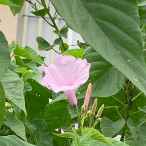 セカンドハウス近くの民家に咲いています。 花はアサガオに似てるのに明らかな 違いは、アサガオは蔓性に対し これは花木になっている事です。 花が柔らかなピンクで好きな色です🌸 葉っぱがハート♥️の形が特徴的です。 コダチアサガオ(木立朝顔) キダチアサガオ 学名: Ipomoea carnea 科: ヒルガオ科 分類階級: 種 上位分類: サツマイモ属