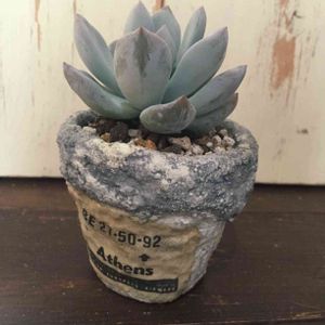モルタル鉢の練習中です まだまだ下手くそだけどエキゾチカ植えてみました。植え替えの時にお粉がとれちゃいました…気をつけないとね