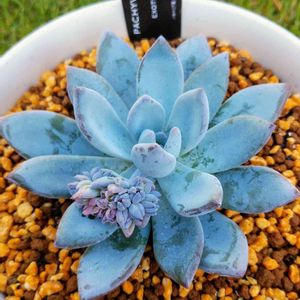 「エキゾチカ」 こちらもお粉で青みがかった綺麗な子です☺️🪴 花芽が出てるので少し傾いていますが、 先端もグラデがかって可愛いですね💐 お花が咲いたら切ってあげよ😌