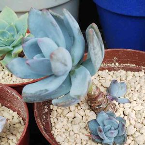 白粉多肉集めてみた〜😊 水分補給❗️とレイスケ君が言っております🌊🌊 鉢減らし👍